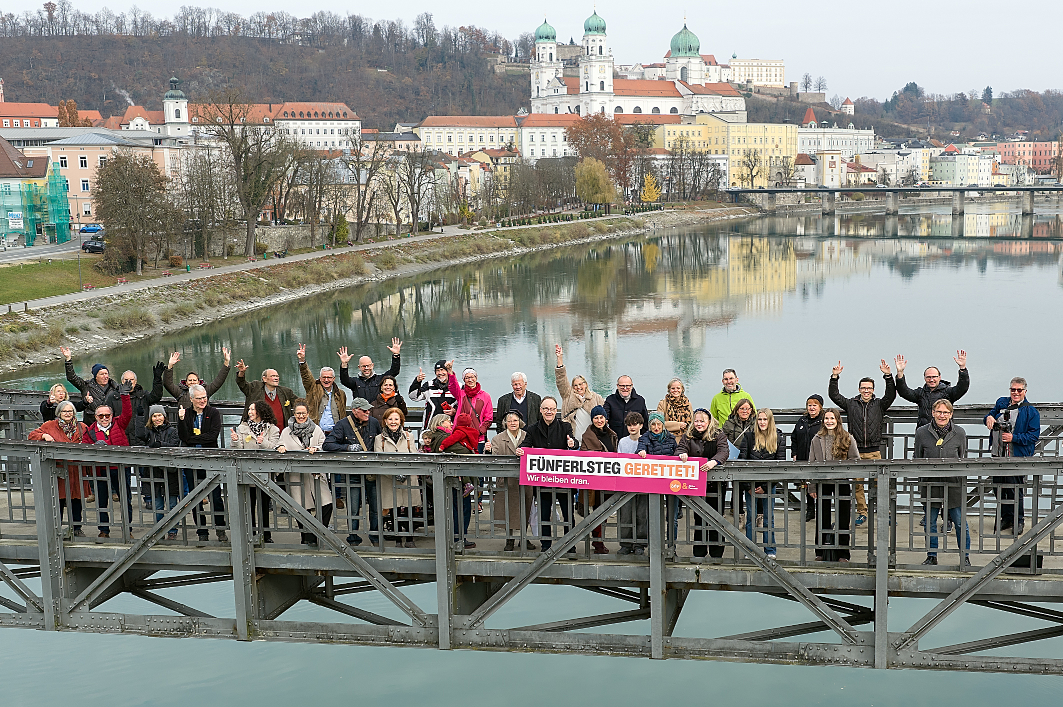 Die Erhaltung des weit über Passau hinaus bekannten Fünferlstegs ist nach Ansicht der ÖDP „einer der schönsten stadtpolitischen Erfolge in diesem Jahr". Die Sanierung wird bekanntlich 2026 angepackt. Ein Abriss mit Ersatzneubau ist vom Tisch. Das ist für den ÖDP-Fraktionsvorsitzenden im Passauer Stadtrat Urban Mangold ein „Anlass zum Feiern": Der OB-Kandidat bat ÖDP-Aktive und weitere Freunde der Fußgängerbrücke zu einem „Freudenfoto" auf der beliebten Innquerung.