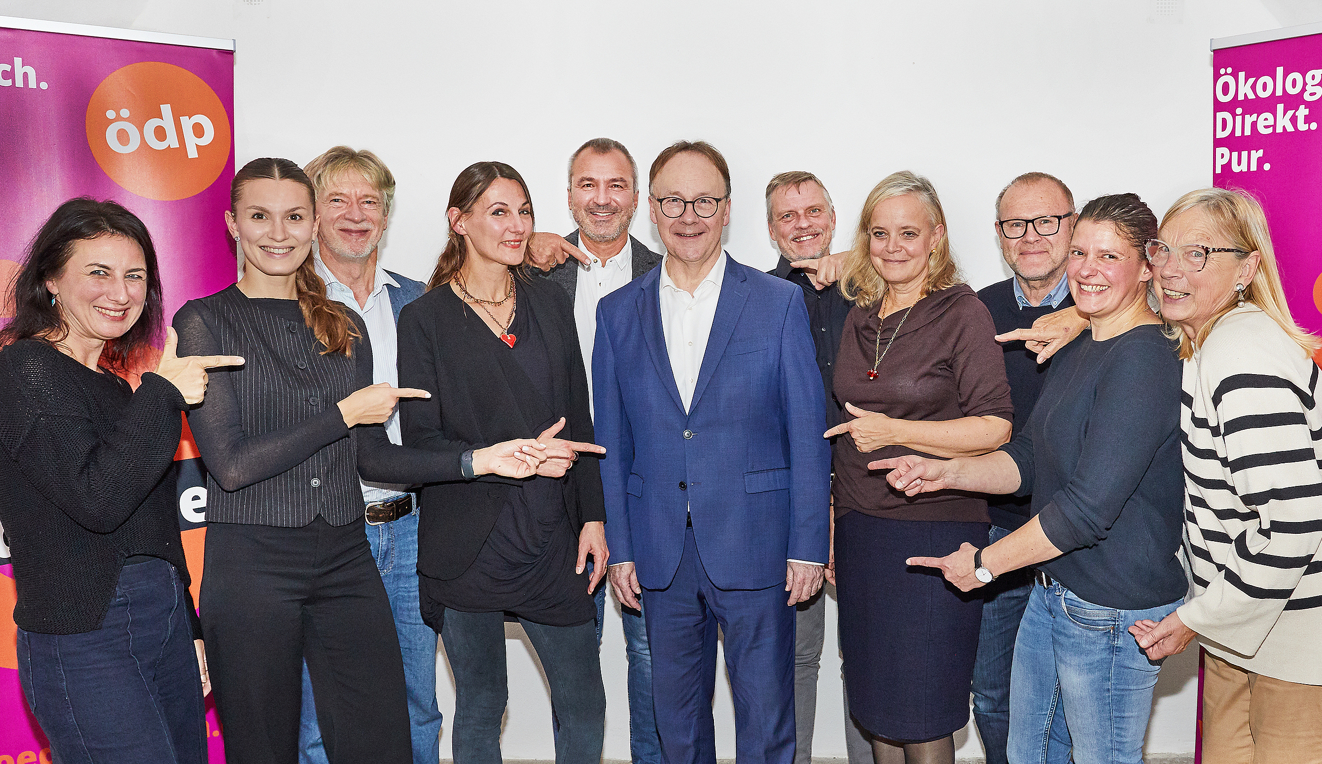 Starker Rückenwind für den OB-Kandidaten Urban Mangold (Mitte) signalisieren die ÖDP-Kreisvorstands- und Fraktionsmitglieder (von links): die stellvertretenden Kreisvorsitzenden Ronja Zöls-Biber und Johanna Seitz, Stadtrat Franz Prügl, Mangolds Ehefrau Katrin, Kreisvorstandsmitglied Andreas Seitz, Kreisvorstandsmitglied Jörn Rüther, die Stadtratsmitglieder Dr. Eva Gerstl und Paul Kastner, Parteichefin Agnes Becker und Gudrun Dentler, die Sprecherin der Wählergruppe Aktive Passauer. Foto: Josef Lang.